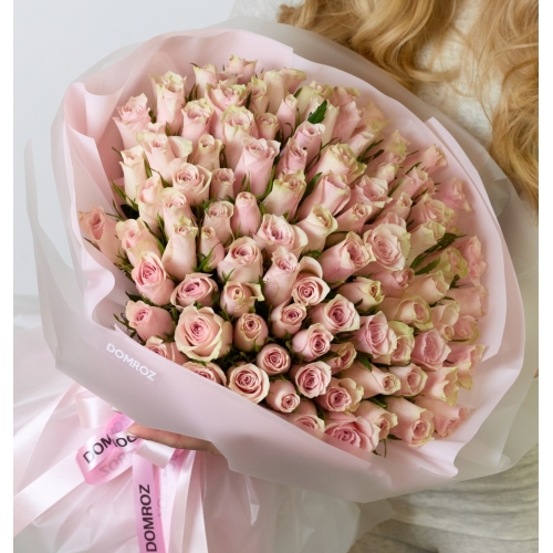 Фото является примером. Букет собирается из роз разных оттенков, и собранный букет может отличаться по цветовой гамме от первоначального фото.