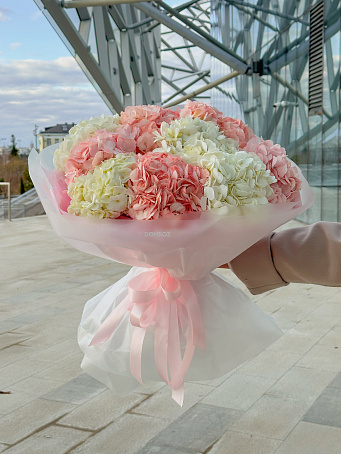 Нежный микс из 9 гортензий