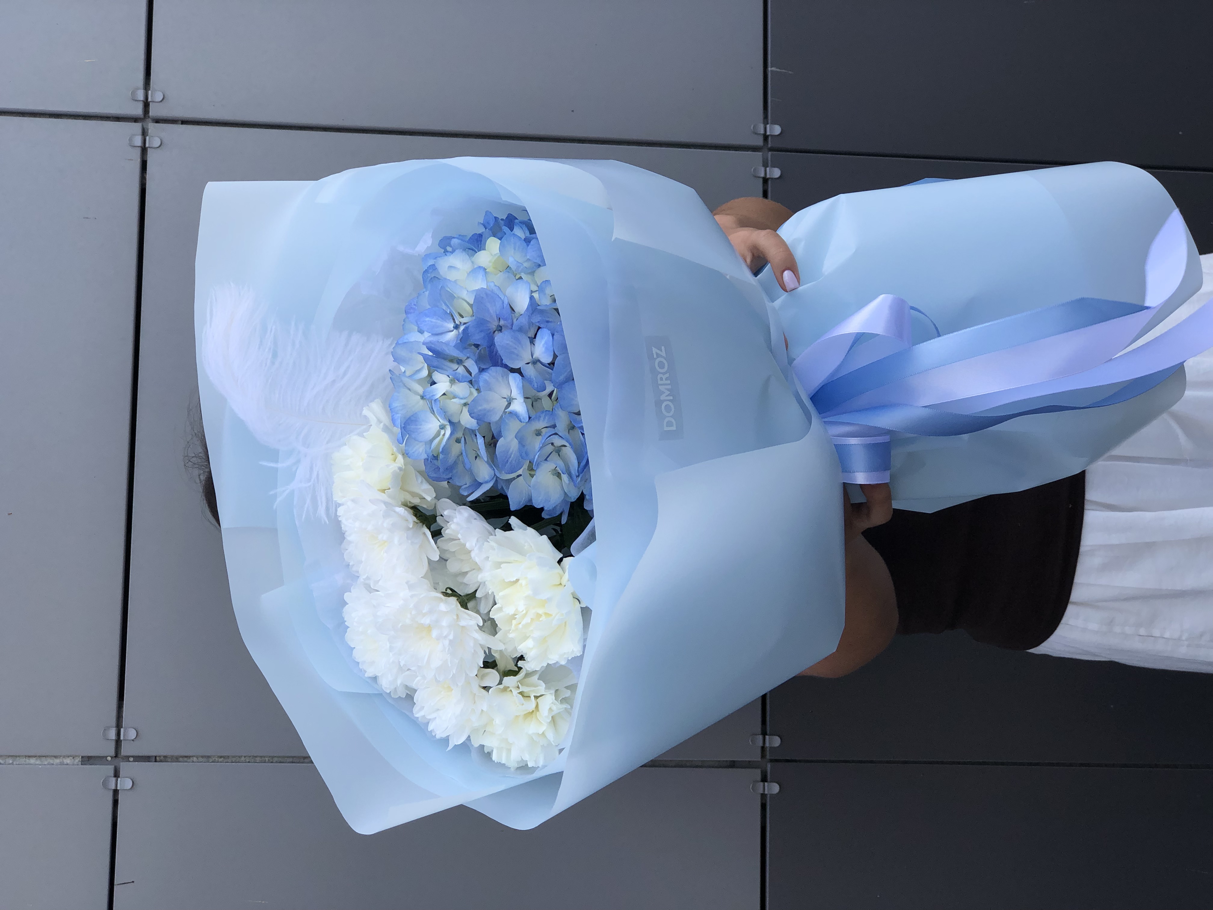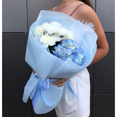 Букет с гортензией и хризантемой