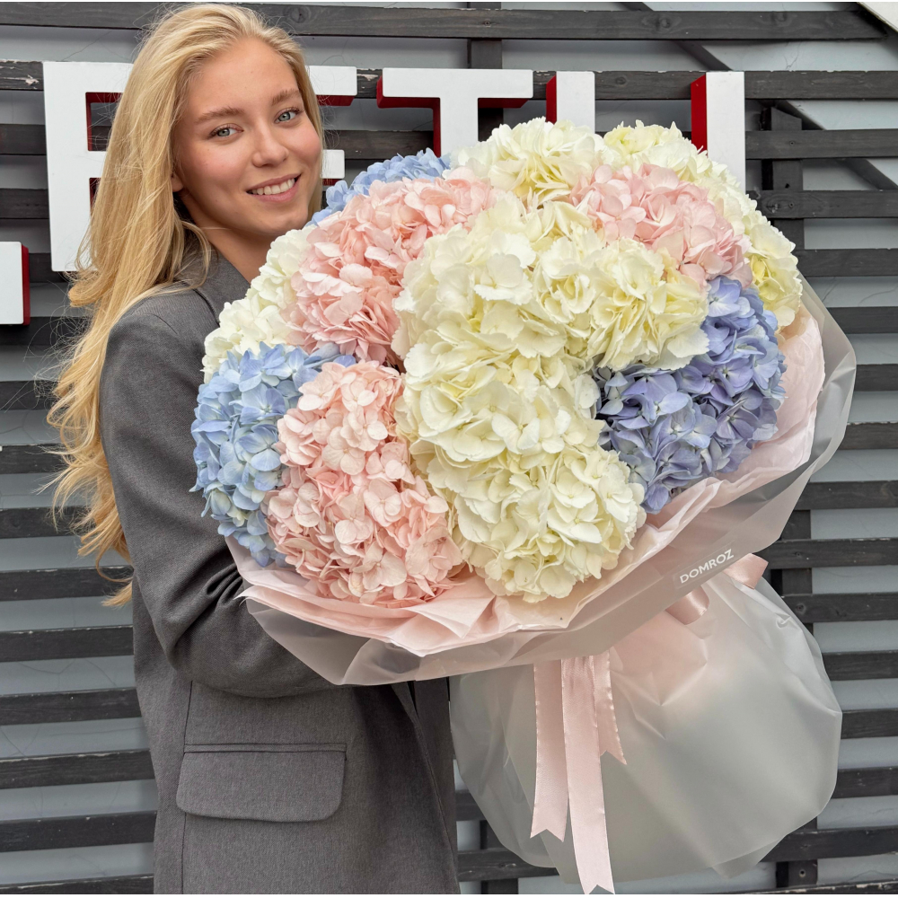 Пастельный микс из 11 гортензий