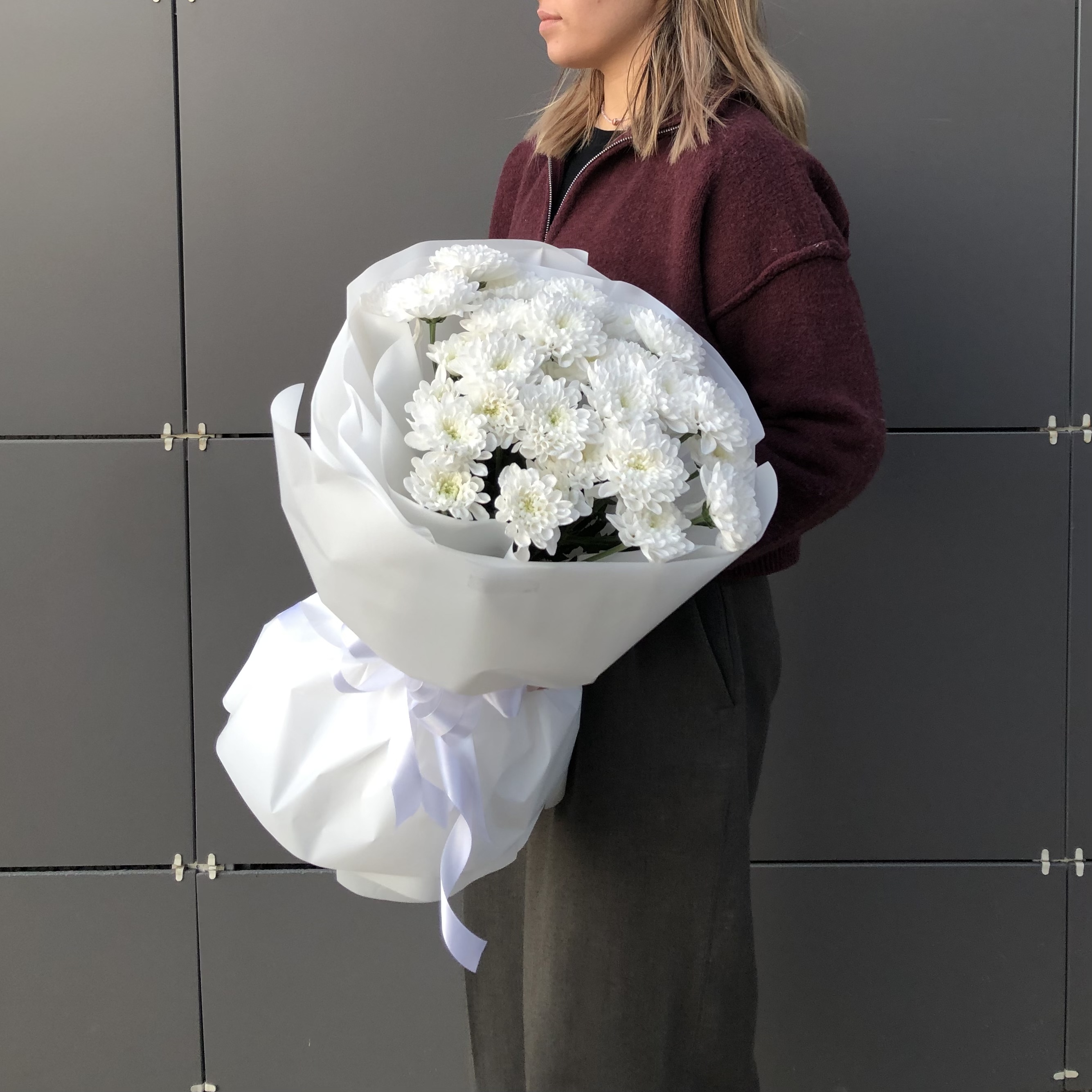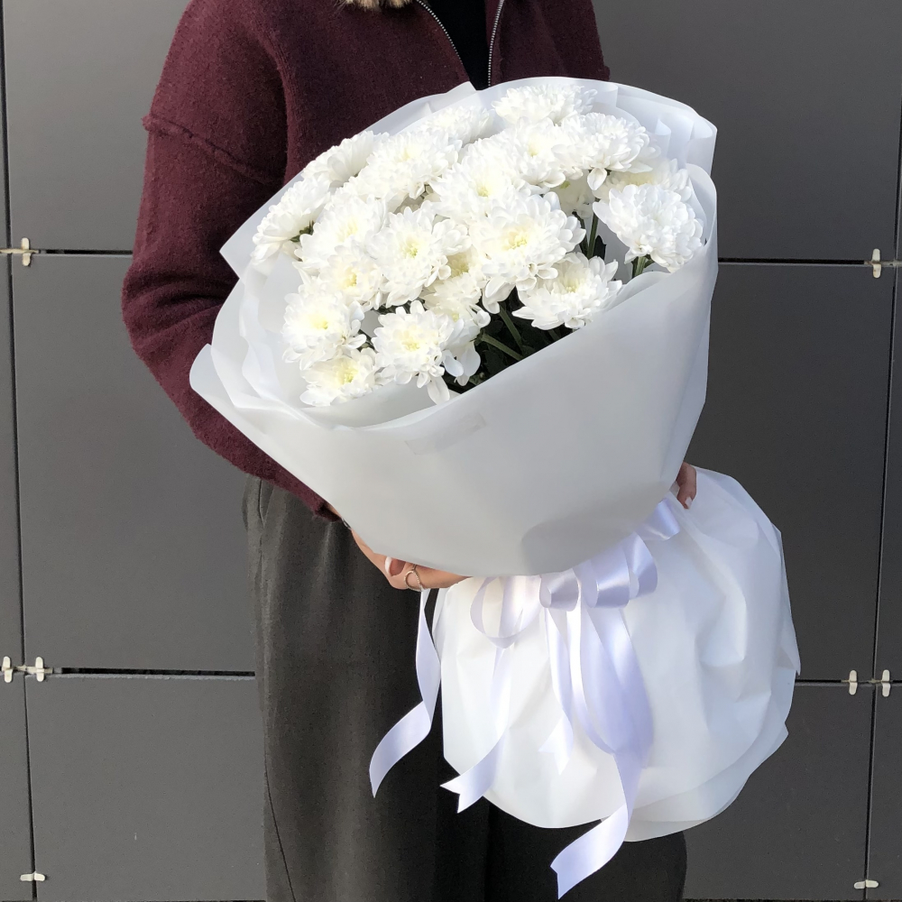 Букет из 5 кустовых белых хризантем